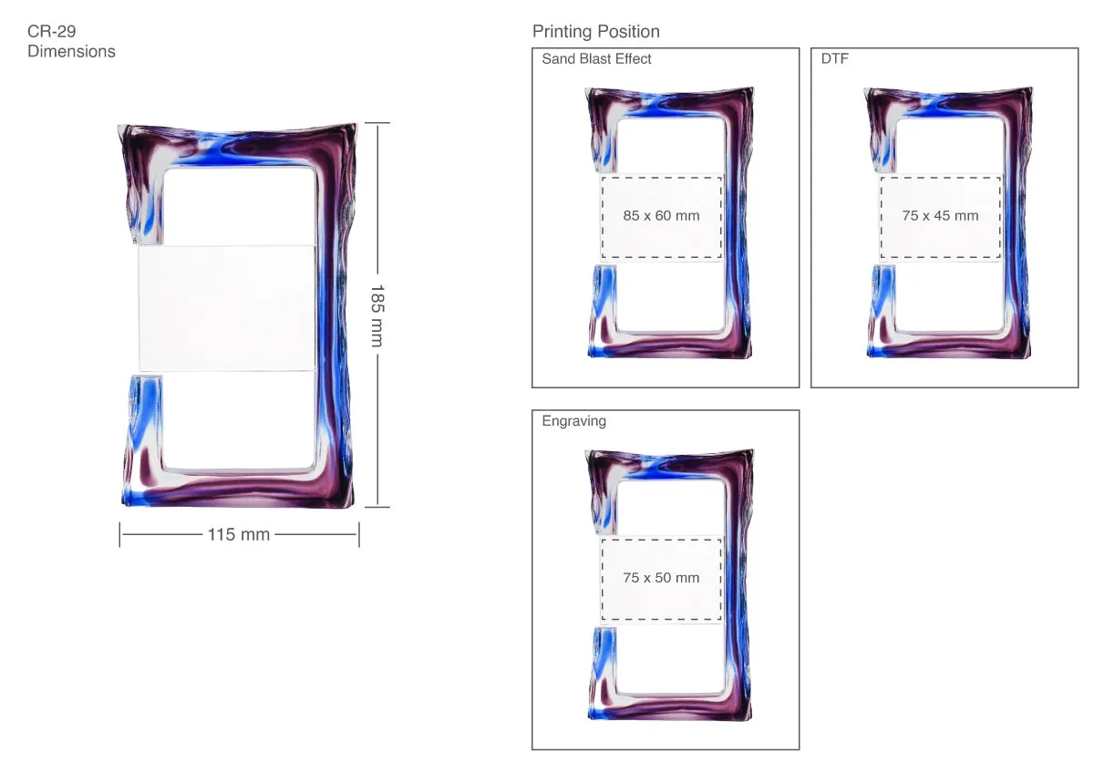 Crystal Award Printing Area Details