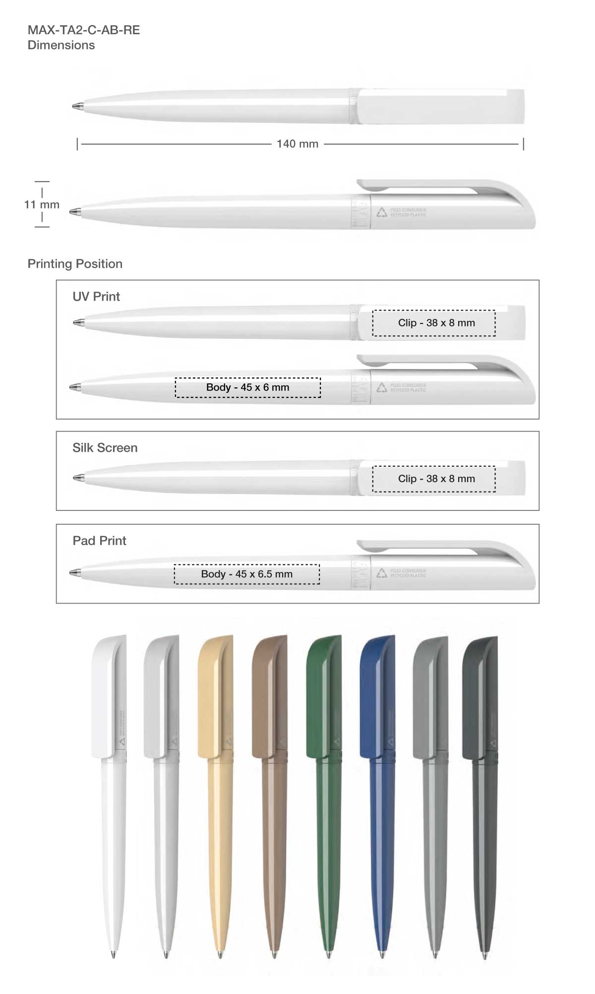 Maxema Recycled Pen Colors | maxema-recycled-06, maxema-recycled-07, maxema-recycled-10, maxema-recycled-19, maxema-recycled-21, maxema-recycled-58, maxema-recycled-76, maxema-recycled-87 |