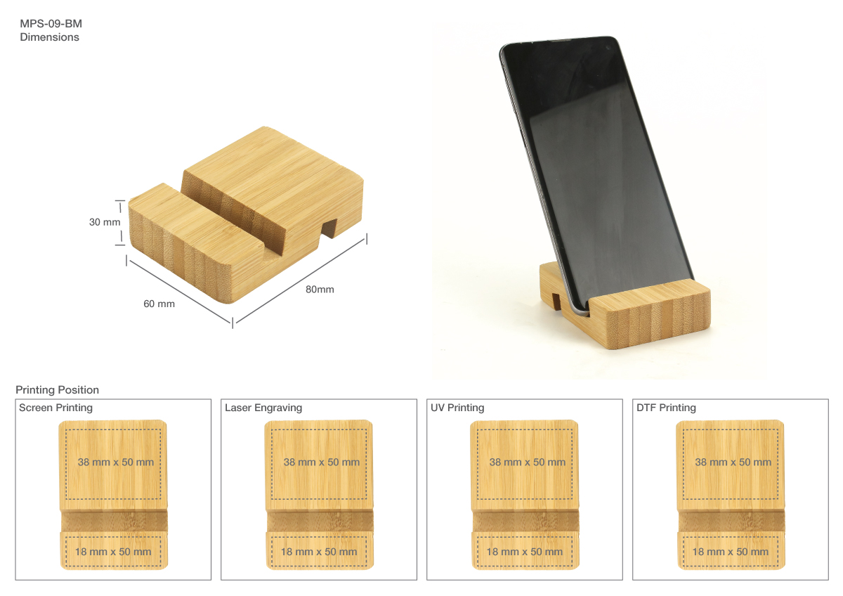 Dual Slots Bamboo Material Phone Stands with Branding Options.