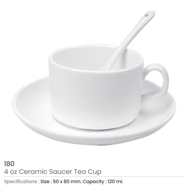 Ceramic tea cups come with a ceramic tea saucer and spoon. All the items have been crafted from ceramic material. Thus, they are hard, solid, and durable. The color of the items is white. The design of the cup, saucer, and spoon is so stylish and elegant. The total capacity of these cups is 120ml which is perfect for drinking coffee and tea. With the available option of sublimation printing, you can customize the logo or emblem of your brand and company. These printed teacups are excellent corporate gifts for different company events.