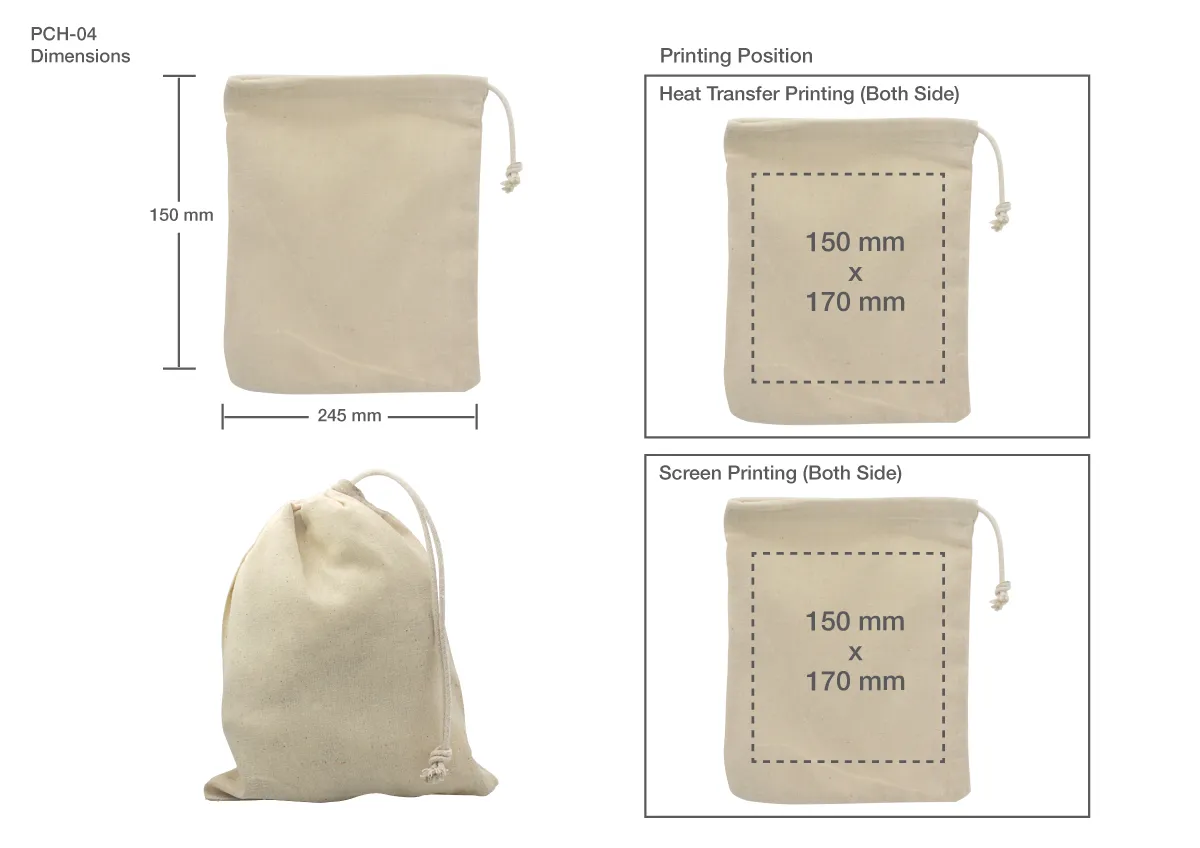 Our distinctive promotional Natural Large Cotton Pouches are an economical branded bag that promotes your business in an eco-friendly manner. They are made from 4 oz. of unbleached, 100% ethically sourced natural cotton.