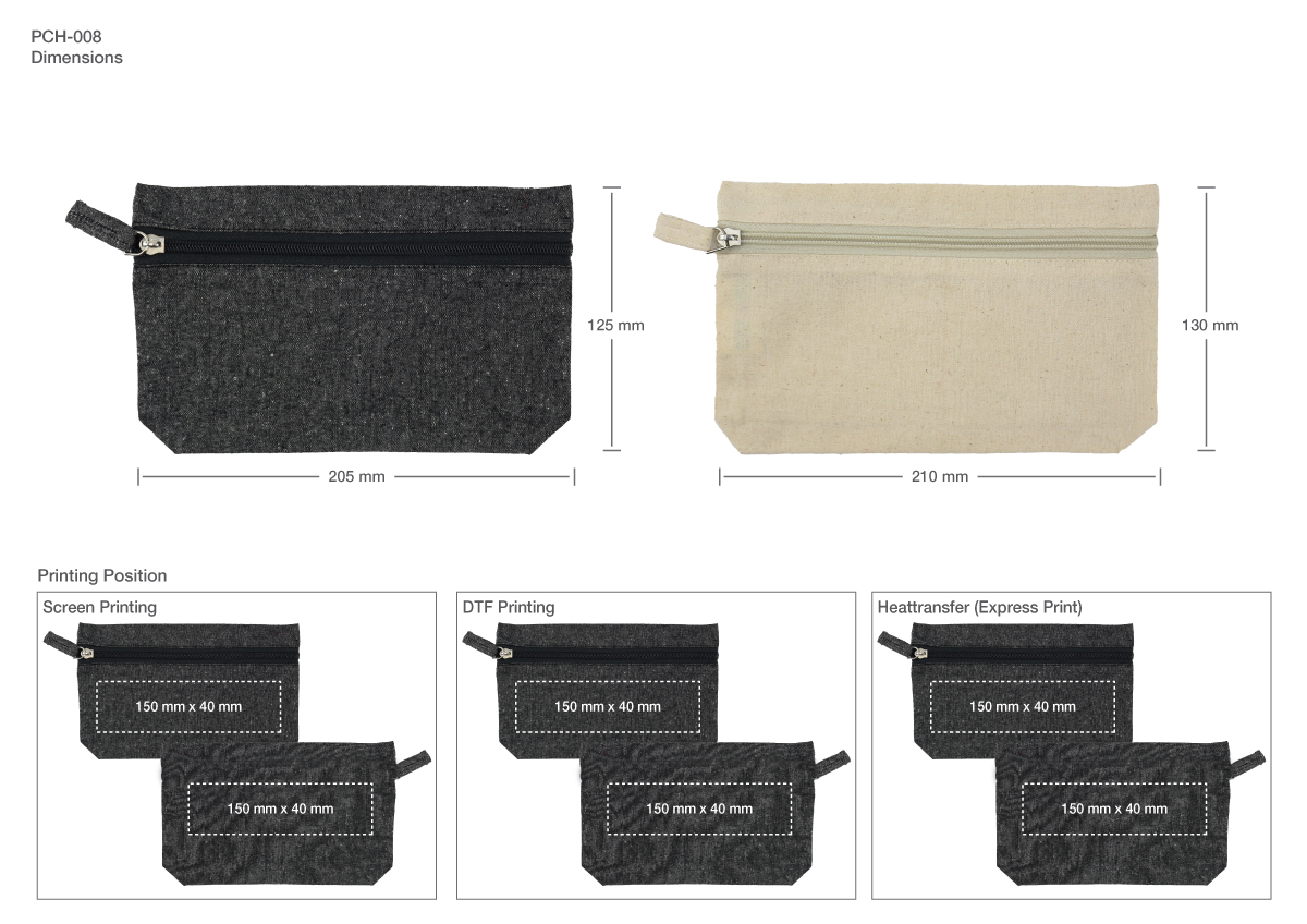Eco-friendly Natural cotton pouch with front zipper closure and Branding Options.