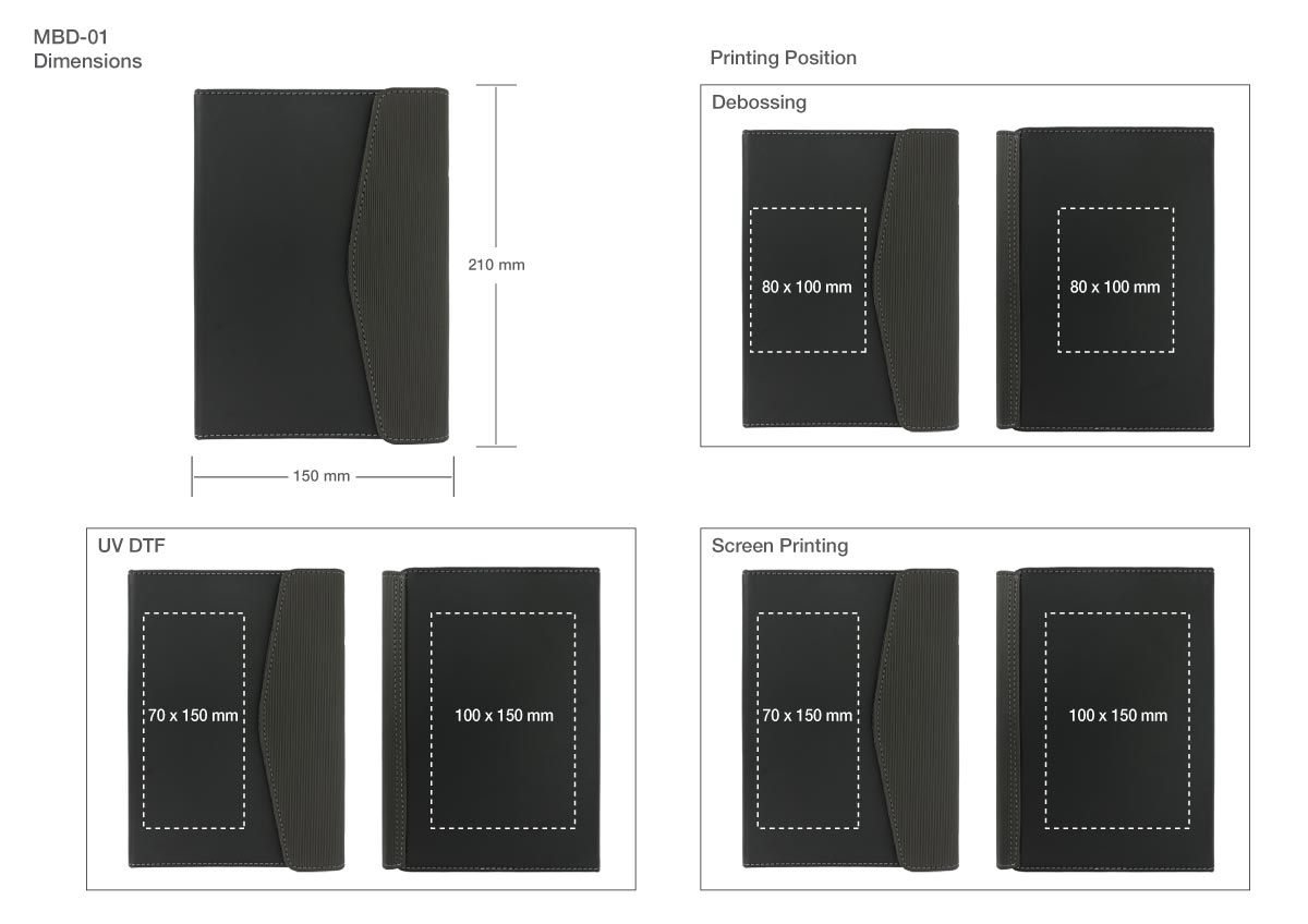 - Screen Printing, UV DTF, and Debossing (Front and Back)