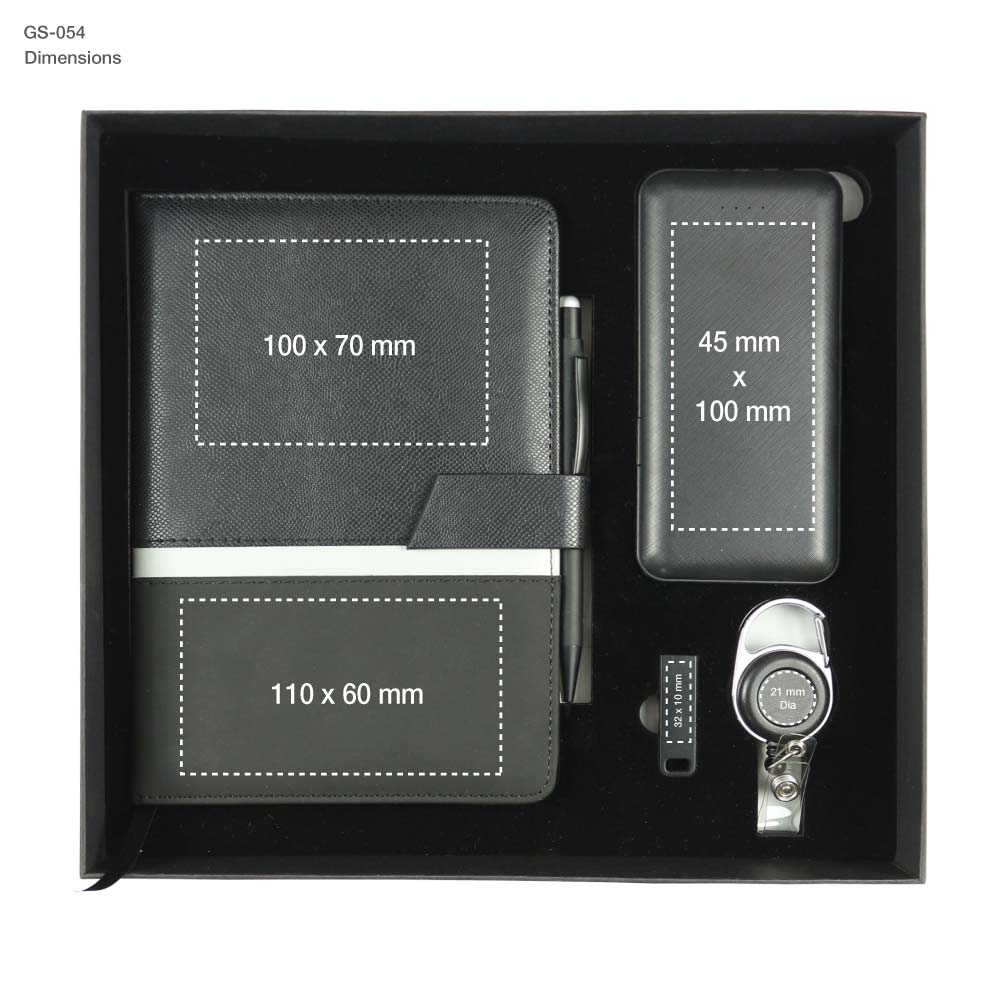 Promotional Gift Sets GS-054: Contains 5 products as listed beside. packed in a cardboard gift box with a cushion inside for product protection and better presentation.