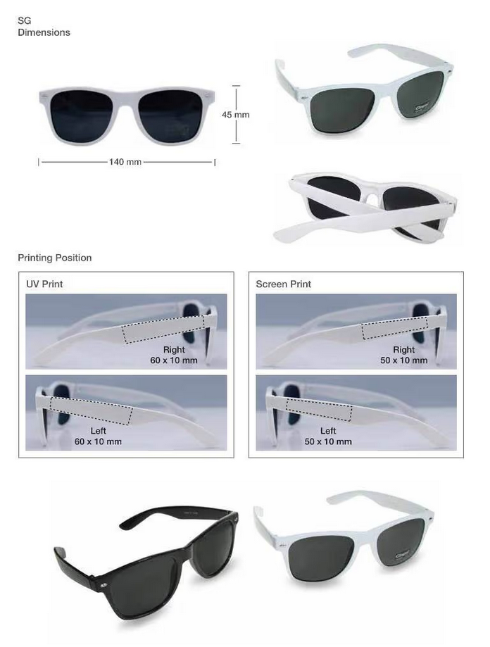 Direct sunlight is harmful to the eyes. So, it’s good to wear sunglasses to avoid eye damage. We have prepared promotional sunglasses for you. You can wear it every day. High-quality material is used in manufacturing. This high-quality material protects your eyes from harmful UV rays. These sunglasses are lightweight. These are easy to carry in daily routine. Moreover, these promotional sunglasses promote your business. This product is available in black and white color. So, you can choose according to your taste. We also provide customized branded sunglasses. UV printing and silk screen printing options are available. Both options are perfect for neat and long-lasting printing. These customized glasses are more valuable and worth wearing. If you are fond of wearing attractive products, this item is especially for you.