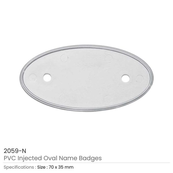 PVC Injected Oval Logo Badges made from durable PVC material, available in 75 x 35 mm and 242 x 60 x 50 mm sizes. Ideal for corporate branding, events, and promotions with high-quality digital printing and epoxy coating.