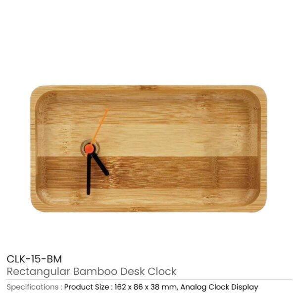 Rectangular Bamboo Desk Clock and Eco-Friendly Bamboo Analog Clocks with Branding and Printing Options.