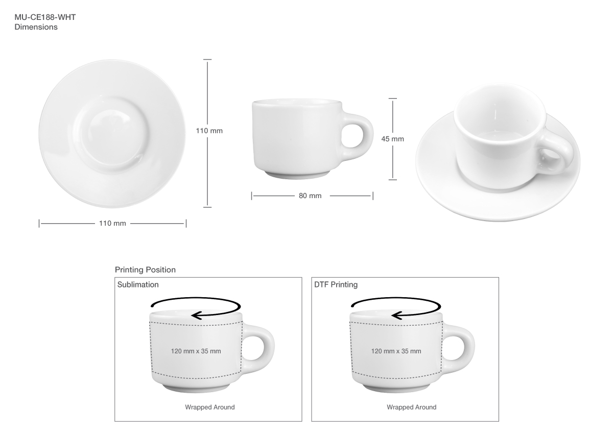 Sublimation White Cup and Saucer, 77 ml Capacity with Branding Options.