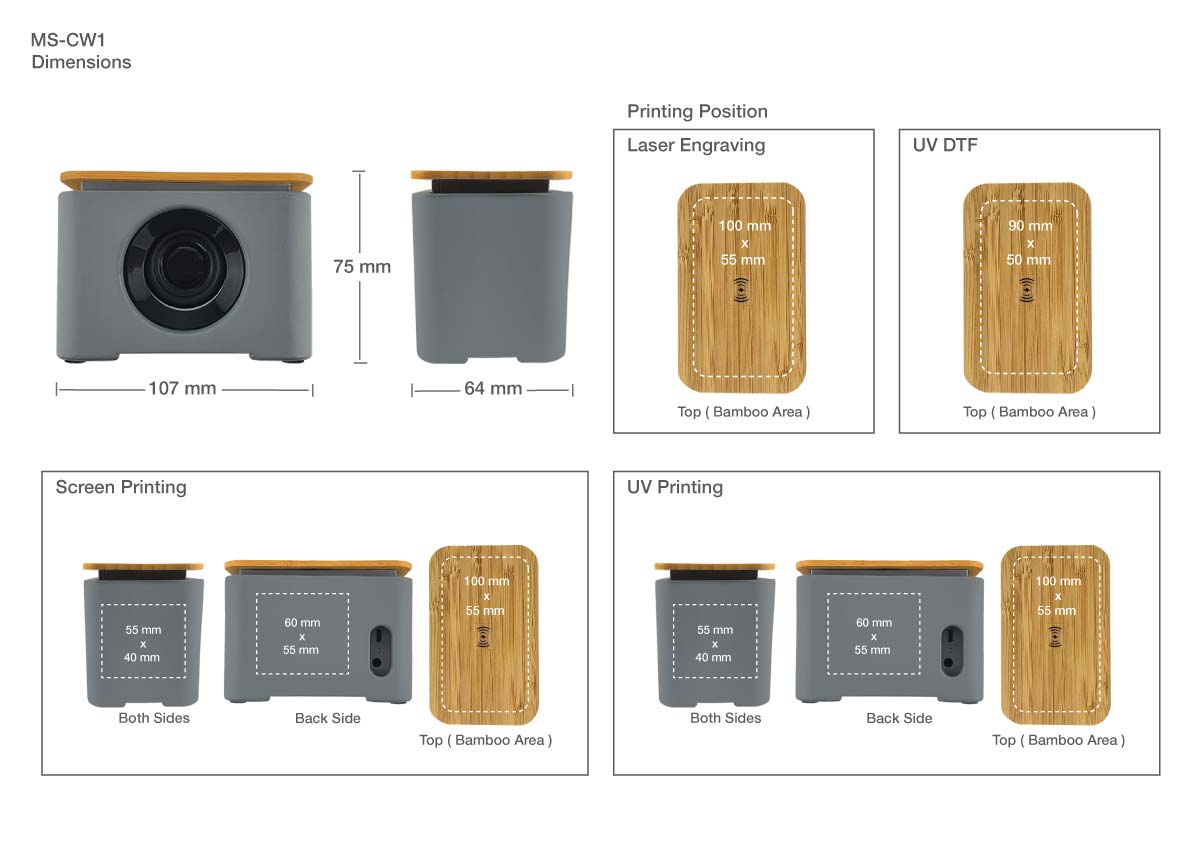 Wireless Charger BT Speaker made from Bamboo and Limestone Cement.